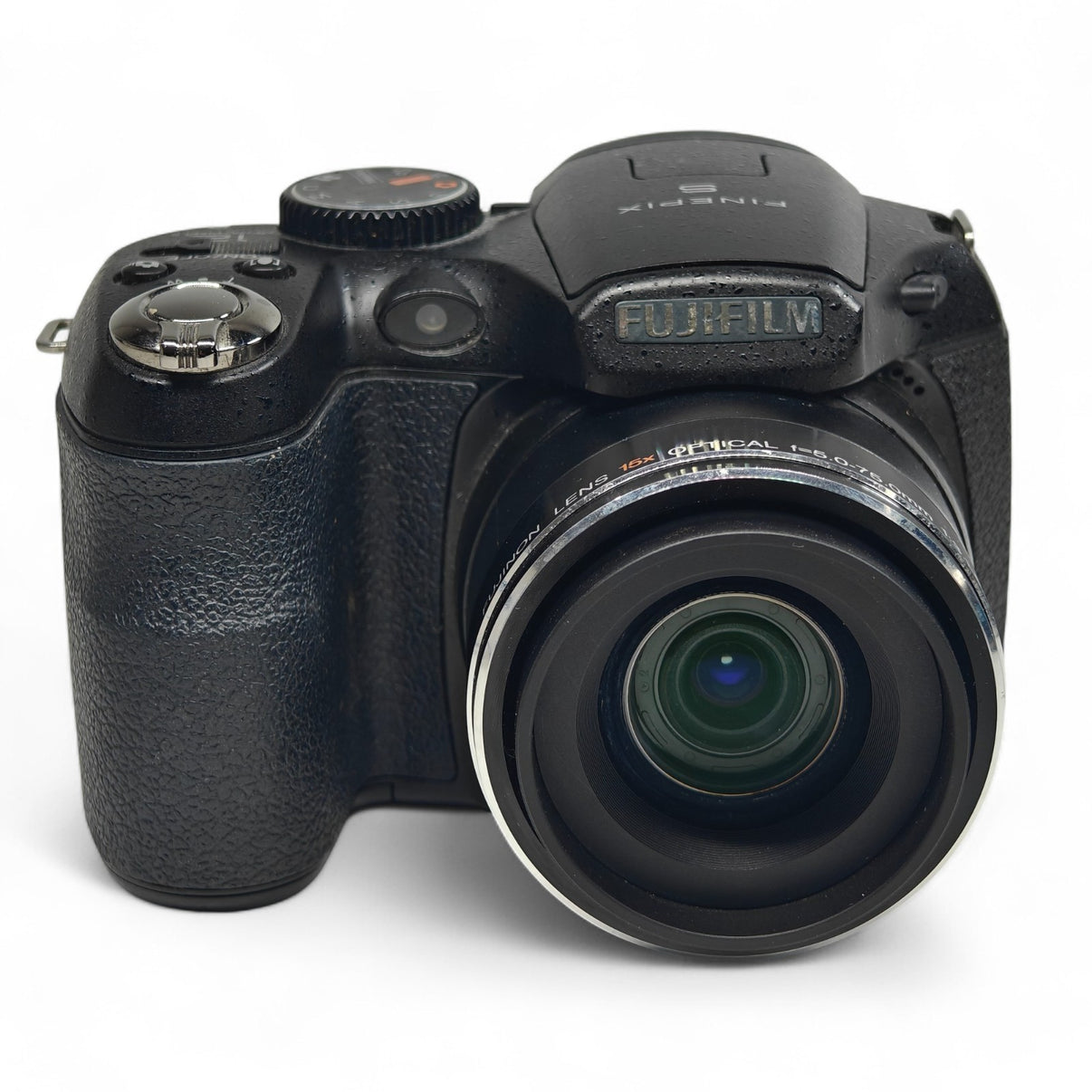 • The Fujifilm FinePix S1600 is a sleek black compact bridge camera with a 12.2MP resolution and 15x optical zoom for sharp, detailed photos. It features a 3" LCD screen, 6.3x digital zoom, and an f/3.1 aperture for versatile shooting. With face detection, built-in flash, image stabilization, and 720p HD video, this lightweight 337g camera offers excellent performance. Powered by AA batteries, it’s perfect for on-the-go photography.