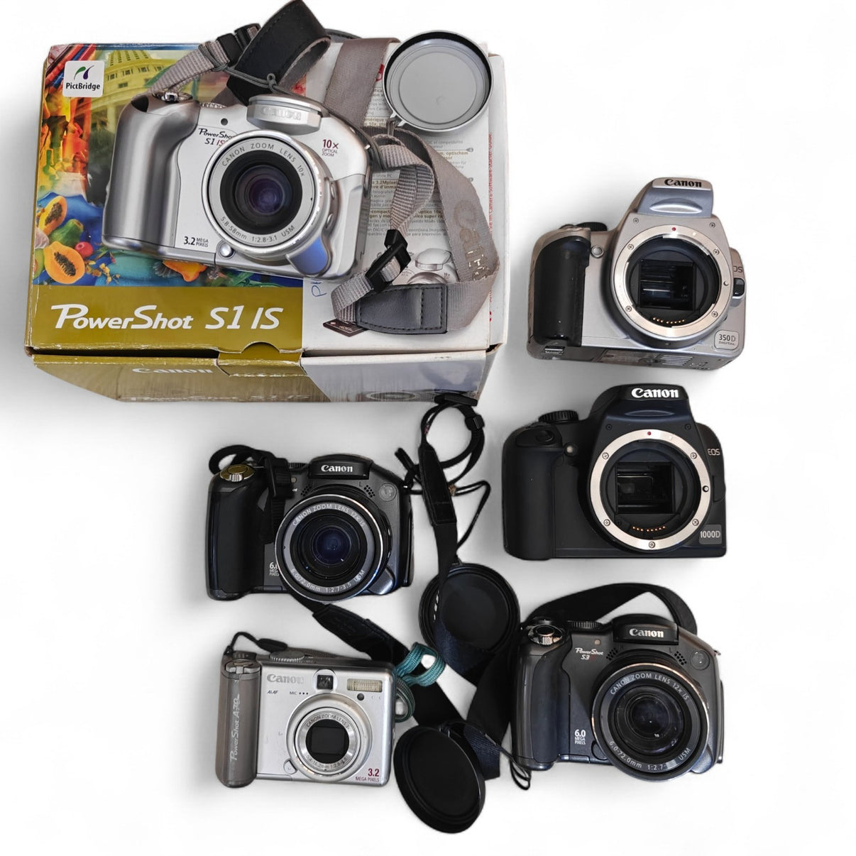 6x Canon Digital Cameras Job Lot PowerShot S1 IS A70 S3 IS S3 IS EOS 350D 1000D