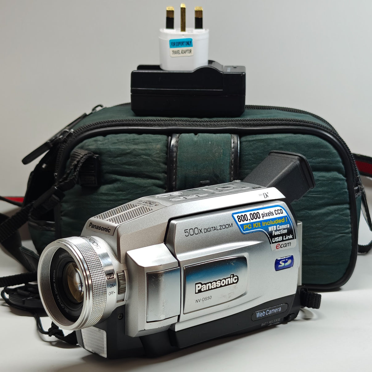 • The Panasonic NV-DS50 MiniDV Camcorder in Silver offers a retro twist on modern video recording with its 500x digital zoom and 10x optical zoom capabilities. This handheld unit features a 2.5-inch LCD screen, built-in microphone, and image stabilization technology for clear and steady footage. With connectivity options including USB and AV, this camera from the Panasonic NV series also boasts a standard definition recording definition, making it a versatile choice for capturing special moments on MiniDV tapes. Ideal for those looking to add a touch of nostalgia to their photography and videography collection.